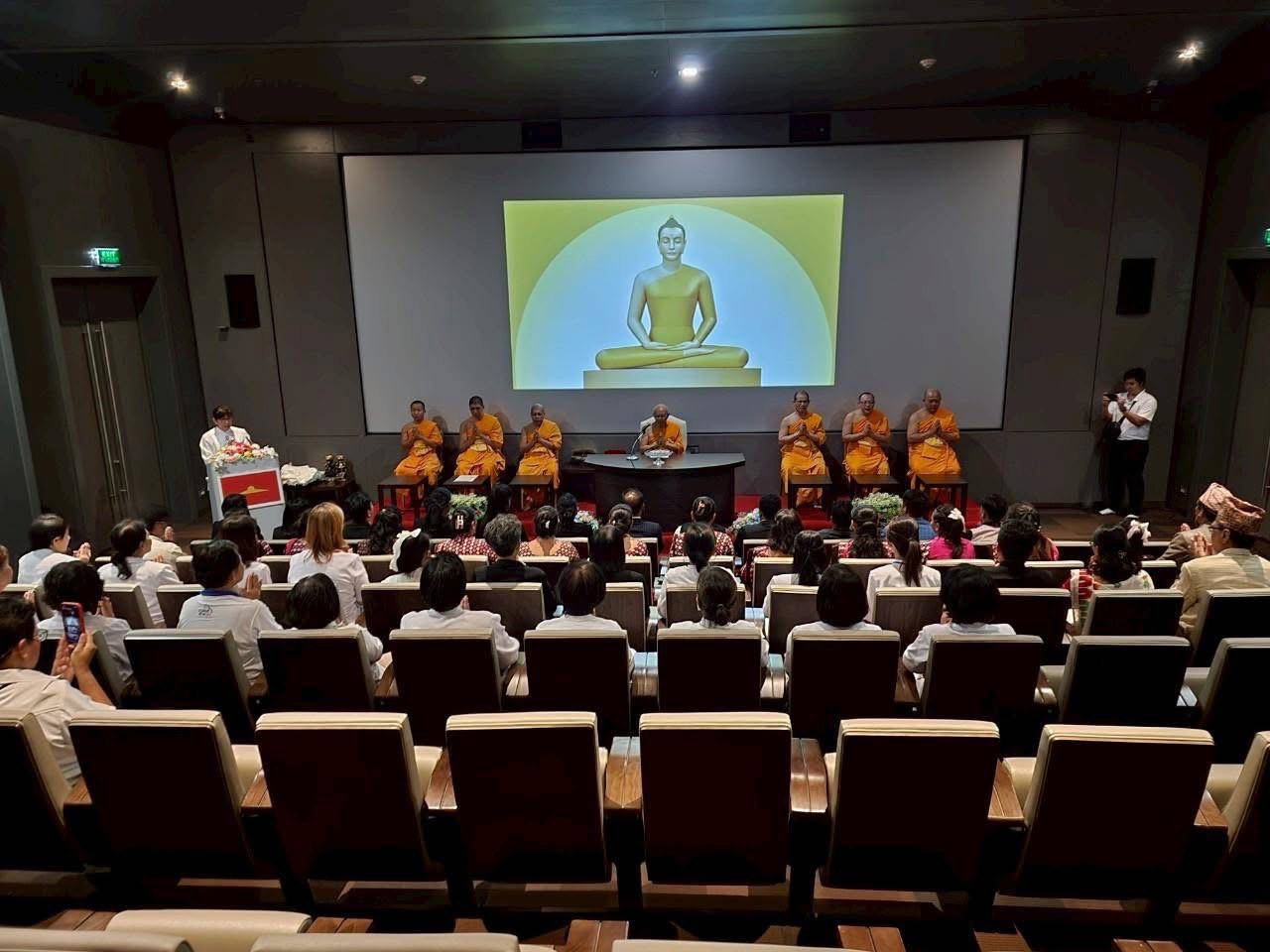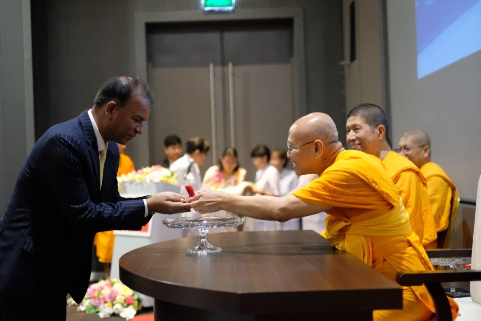 ในพิธีมอบเกียรติบัตร “ความดีสากล” แด่คณะครูจากประเทศเนปาล ซึ่งเดินทางมารับการอบรมในโครงการพัฒนาศักยภาพครูผู้นำเยาวชนเพื่อสันติภาพโลก อันมีเป้าหมายเพื่อส่งเสริมศีลธรรมและคุณธรรมให้หยั่งรากลึกในจิตใจเยาวชนของเนปาล ดินแดนอันศักดิ์สิทธิ์ซึ่งเป็นแผ่นดินประสูติขององค์พระสัมมาสัมพุทธเจ้า พิธีเริ่มต้นด้วยการชมภาพยนตร์สั้นบันทึกความประทับใจจากกิจกรรมการอบรม ตามด้วยการแสดงศิลปวัฒนธรรมอันงดงามจากคณะครูเนปาล โดยมี พระครูภาวนาสุธรรมวิเทศ (หาญชัย อาสภกนฺโต) ผู้ช่วยเจ้าอาวาสวัดพระธรรมกาย เป็นประธานสงฆ์ในพิธี ผู้แทนพระครูปลัดรัตนวีรวัฒน์ (รังสฤษฏ์ อิทธิจินตโก) เจ้าอาวาสวัดพระธรรมกาย และได้รับเกียรติจากท่าน ธัน พหาทุร โอลิ (H.E. Mr. Dhan Bahadur Oli) เอกอัครราชทูตเนปาลประจำประเทศไทย เป็นประธานฝ่ายฆราวาส