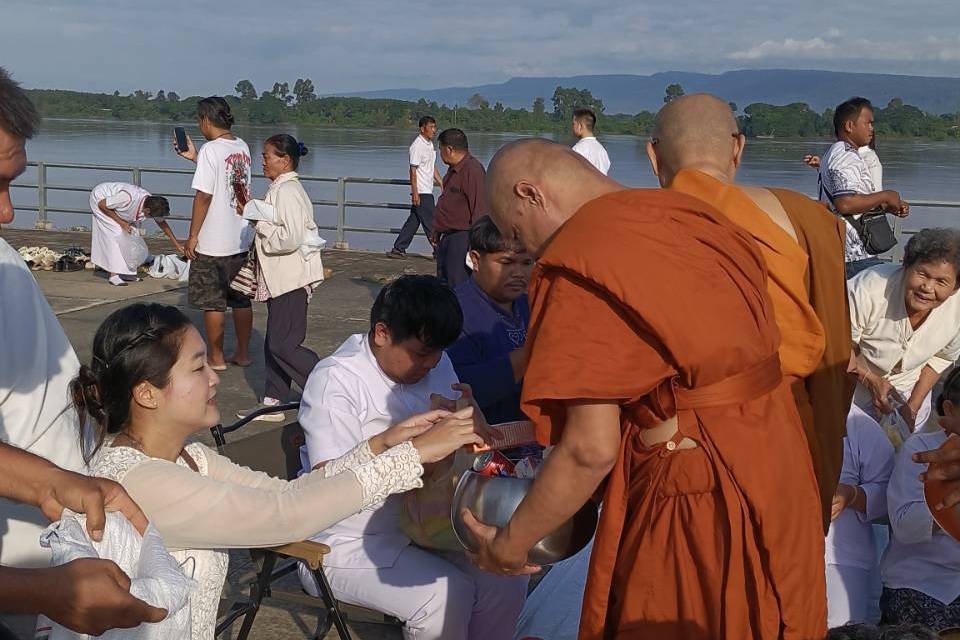 พิธีครั้งนี้ได้รับเกียรติจาก พระครูสุวรรณรัตนสุนทร, ดร. เจ้าคณะอำเภอรัตนวาปี เจ้าอาวาสวัดโพธิ์ชัย เป็นประธานฝ่ายสงฆ์ และ นายสมภพ สมิตะสิริ ผู้ว่าราชการจังหวัดหนองคาย เป็นประธานฝ่ายฆราวาส บรรยากาศเต็มไปด้วยความศรัทธาและความสงบเย็น พุทธศาสนิกชนจากทั่วสารทิศต่างพร้อมใจกันกล่าวคำแสดงตนเป็นพุทธมามกะ อาราธนาศีลห้า เจริญสมาธิภาวนา และร่วมถวายภัตตาหารเป็นสังฆทาน รวมถึงถวายไทยธรรมแด่พระภิกษุสงฆ์ด้วยใจเลื่อมใส