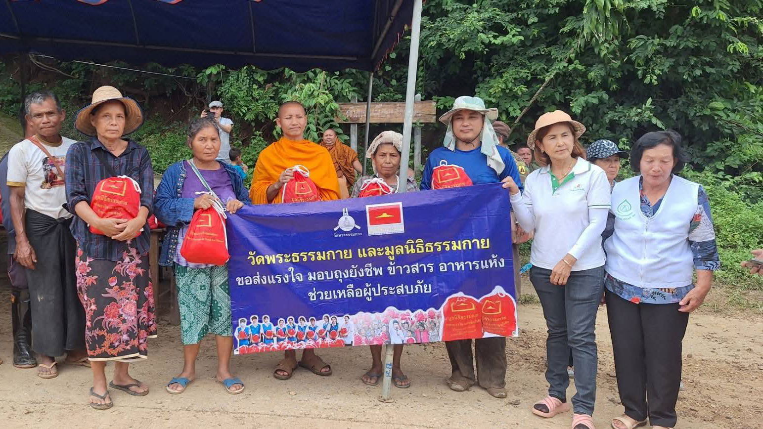 พระครูปลัดรัตนวีรวัฒน์ เจ้าอาวาสวัดพระธรรมกาย มอบหมายให้พระสุรชัย สุรธมฺโม ประธานสงฆ์ศูนย์ปฏิบัติธรรมขุนยวม มอบถุงยังชีพบรรจุข้าวสารอาหารแห้งจำนวน 600 ชุด แก่ประชาชนผู้ได้รับผลกระทบจากอุทกภัยน้ำป่าไหลหลากและดินถล่มในพื้นที่อำเภอแม่สะเรียง จังหวัดแม่ฮ่องสอนเป็นสาธารณสงเคราะห์ โดยได้ตั้งจุดมอบความช่วยเหลือในวัดและชุมชนกลางหมู่บ้าน ซึ่งบางจุดเป็นพื้นที่ห่างไกลความช่วยเหลือยังเข้าไม่ถึง และบางพื้นที่อยู่ในระหว่างการฟื้นฟูเก็บกวาดที่พักอาศัยให้กลับมาอยู่ในสภาพใช้งานได้