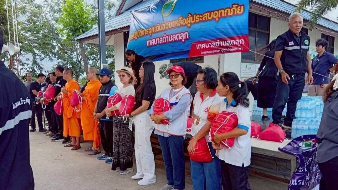 วันที่ 20 พฤศจิกายน 2568 ณ อาคารครัว 71 ปี วัดพระธรรมกาย พระครูปลัดรัตนวีรวัฒน์ (รังสฤษดิ์ อิทฺธิจินฺตโก) เจ้าอาวาสวัดพระธรรมกาย มอบหมายให้ พระมหานพพร ปุญฺญชโย ป.ธ.9 ผู้ช่วยเจ้าอาวาสวัดพระธรรมกาย พระธีระพัฒน์ กุลธีโร หัวหน้าสำนักงานประสานงานเครือข่ายภายในประเทศ พระครูสมุห์ สมชาย วํสธีโร ผู้แทนมูลนิธิธรรมกาย มอบความช่วยเหลือเบื้องต้นแก่ผู้ประสบอุทกภัยในเขตอำเภอเมือง และอำเภอสรรพยาจังหวัดชัยนาท นำโดยพระครูสมณธรรมชัย เจ้าคณะตำบลหาดท่าเสา ผู้ช่วยเจ้าอาวาสวัดพระบรมธาตุวรวิหารเป็นผู้แทนรับมอบถุงยังชีพจำนวน 500 ชุด น้ำหนัก 1,750 กิโลกรัม และยังได้รับความอนุเคราะห์จากอาสาสมัครของ ศูนย์ปฏิบัติธรรมและศูนย์อบรมเยาวชนชัยนาท นำถวายให้แด่พระภิกษุสงฆ์และมอบแก่ประชาชนผู้เดือดร้อนต่อไป