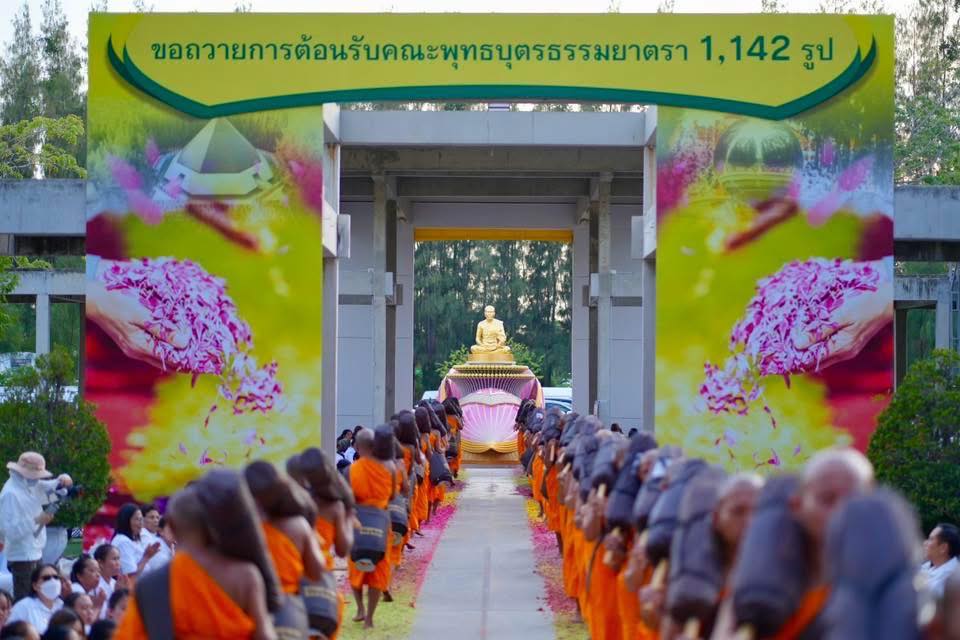 บรรยากาศภายในพิธี พระภาวนาธรรมวิเทศ ผู้ช่วยเจ้าอาวาสวัดพระธรรมกาย นำคณะสงฆ์ธรรมยาตรา 1,142 รูป พร้อมด้วยสาธุชน ร่วมเจริญสมาธิภาวนาและอธิษฐานจิต ณ อนุสรณ์สถานพระมงคลเทพมุนี อำเภอสองพี่น้อง จังหวัดสุพรรณบุรี โดยมีนายณัฐพงษ์ สงวนจิตร ผู้ว่าราชการจังหวัดสุพรรณบุรี เป็นประธานฝ่ายฆราวาส