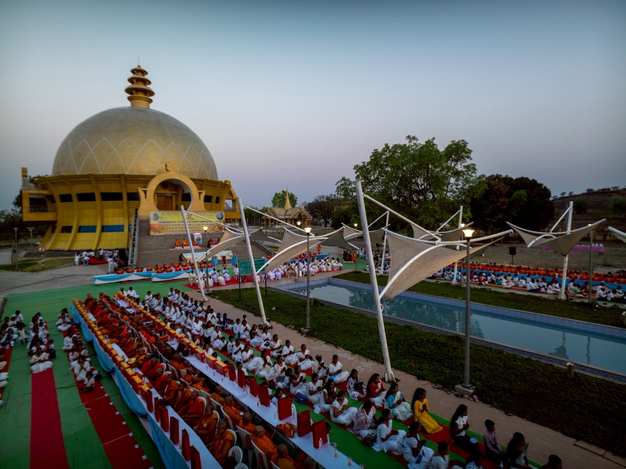 บรรยากาศภายในพิธีมี พระอาจารย์สังฆนันท์ มหาสัทธาวีร์ เจ้าอาวาสวัดมหาปัญญาพุทธวิหาร เมืองนาคปูร์ เป็นประธานสงฆ์, นายซันเจย์ ปาติล กรรมการฝ่ายศาสนสมบัติ พุทธสภาแห่งสาธารณรัฐอินเดีย (Indian Buddhist Council) เป็นประธานฝ่ายฆราวาส ในโอกาสนี้พระครูปลัดรัตนวีรวัฒน์ (รังสฤษดิ์ อิทฺธิจินฺตโก) ที่ปรึกษาเจ้าคณะจังหวัดปทุมธานี เจ้าอาวาสวัดพระธรรมกาย มอบหมายให้พระมหานพพร ปุญฺญชโย ป.ธ.9 ผู้ช่วยเจ้าอาวาสวัดพระธรรมกาย เป็นผู้ถ่ายทอดแนวทางการฟื้นฟูพระพุทธศาสนาในดินแดนพุทธภูมิของหลวงพ่อธัมมชโย พร้อมมอบของที่ระลึก จุดประทีปโคมธรรม 1,082 ดวง กล่าวสัมโมทนียกถาและนำคณะสงฆ์และสาธุชนเวียนประทักษิณรอบศาสนสถานสำคัญในวัดพุทธสันติวัน ธรรมชัย